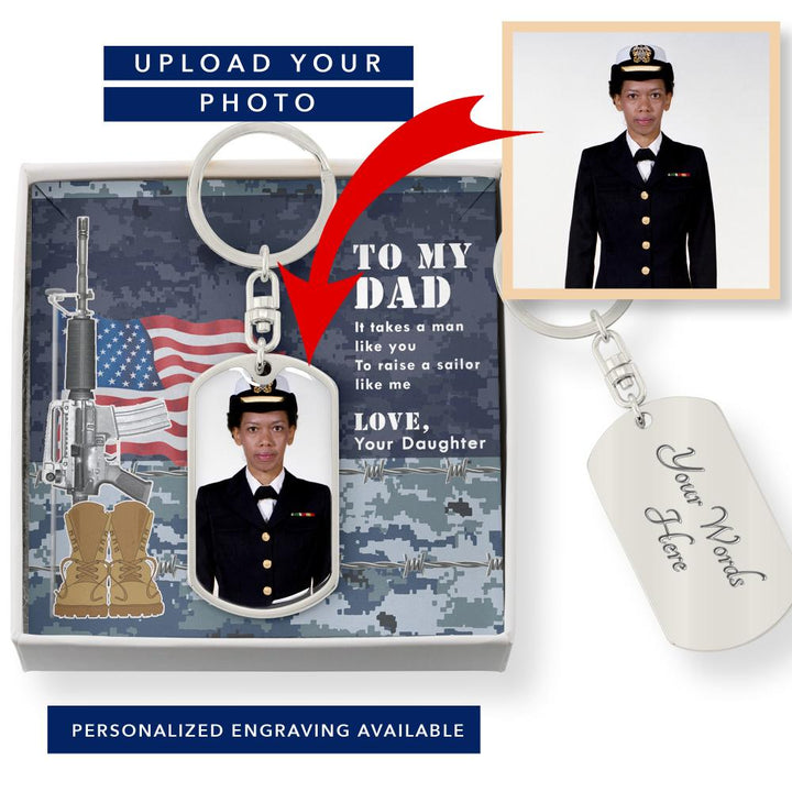 Navy Daughter Photo Upload Dog Tag Father's Day Keychain