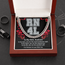 To make it gift-ready and luxuriously presentable, the necklace is set inside a luxurious Mahogany Style Gift Box, featuring a warm LED light that glows softly when the box is opened. This light gorgeously showcases the beautiful chain in the best light.