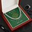 Your necklace is powerfully presented in our Luxurious Mahogany Style Gift Box. The gift box features a brilliant LED spotlight to showcase the beautiful chain necklace. This makes for an extra wow factor and easy gifting!