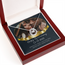 The gorgeous necklace is presented in a Luxurious Mahogany Style Gift Box. The gift box features a warm LED light to showcase the beautiful pendant. A message card that can be personalized with an anniversary date and photo is also included. This will make her feel special and loved.